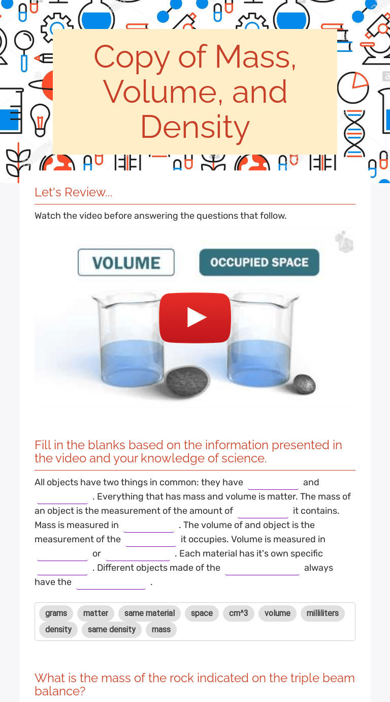 Density 8Th Grade Worksheet / Matter Mass Volume And Density Worksheet -. In this grade 8 natural sciences video lesson we will be teaching you. Apply an equation to determine the density of an object based on its mass and volume. If the formula for density is density = mass/volume, . A box 5 cm long, . Improve your science knowledge with free questions in calculate density, mass, and volume and thousands of other science skills.